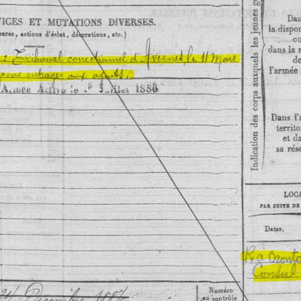 - Sa condamnation au tribunal correctionnel d’Avesnes date du 11/03/1884 (et ce n’est pas écrit « par contumace »)