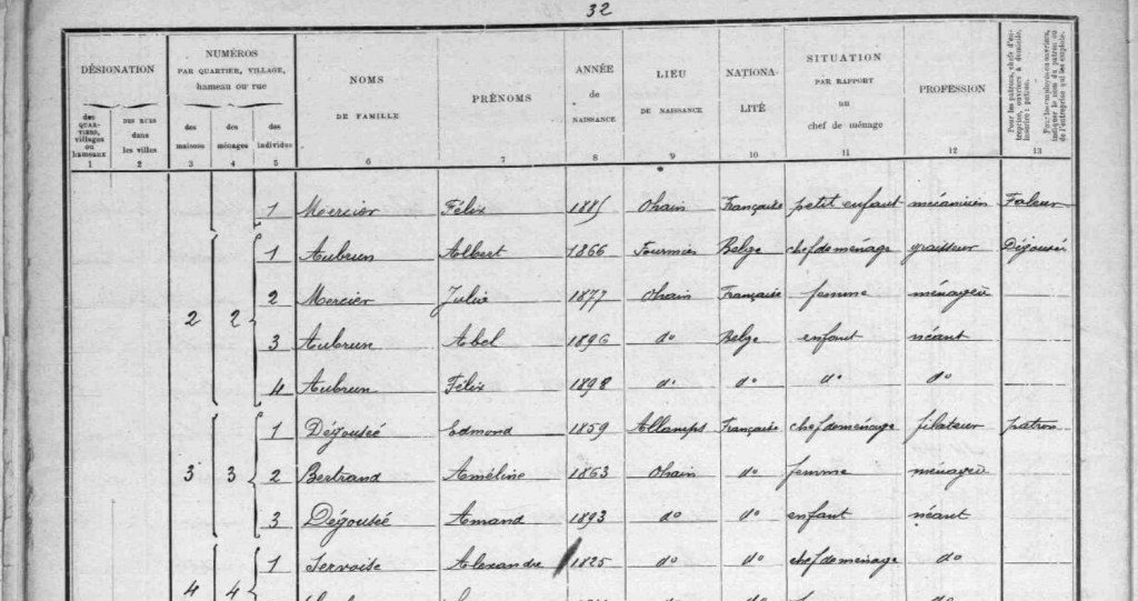 Hélas le mardi 13 septembre 1904, alors âgé de 12 ans, Lucien Albert décède en la maison familiale, rue de Véreuse à Ohain. C’est pourquoi lors du recensement de 1906, les enfants AUBRUN ne sont plus que deux. La famille déménage et vit à présent rue Neuve, juste à côté de la famille Edmond DEGOUSEE pour laquelle Albert travaille. Le monde est vraiment petit.