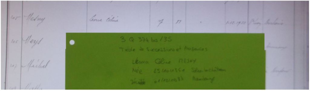 Forte de cette découverte, j’avais préparé le soir même une petite fiche sur Léona Céline MESNY dont voici le résumé des informations connues :