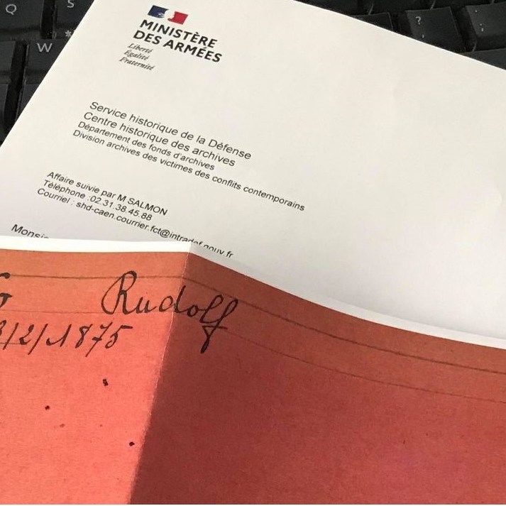 Au cours de l’un des mails de novembre 2020, Cher Cousin m’informe qu’il a une piste grâce au site Mémoires des Hommes quant au décès de Rudolf, mais il n’a pas le document pour confirmer. Il faut soit gérer l’allemand et s’intéresser aux archives de l’autre côté de la frontière soit écrire au SHD. Ni une ni deux le courrier est rédigé, j’invite mon homme à lire et signer le document et zou direction la poste. Puis, j’oublie…
