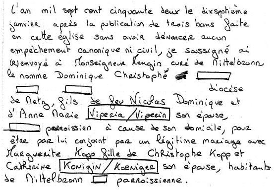 Autres recherches dans le thème de l’entraide, celle faite pour Jacques aux AD57 concernant un mariage à Phalsbourg (ou dans les environs) en 1752 et dont les époux étaient nés vers 1727 pour monsieur et vers 1737 pour mademoiselle. Prénoms et noms venaient compléter les informations.
