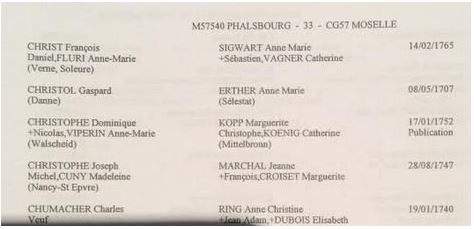 Alors que j’attendais le microfilm, j’ai essayé de ne pas rester inactive. J’avais donc posé mes affaires à la table de relevés d’associations et commencé à chercher si d’autres mariages à PHALSBOURG (et environs) étaient répertoriés, ainsi j’ai pu compléter les informations que j’allais rendre à Jacques qui a aimablement accepté que je publie ce post sur cette recherche d’entraide généalogique centrée sur ses aïeux.